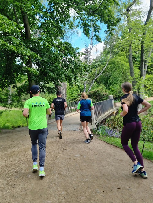 Trener dopasowuje trening do poziomu zaawansowania uczestników. Każde spotkanie treningowe rozpoczyna się od rozgrzewki, następnie prowadzący przechodzi do głównej części treningowej – od interwałów po spokojne wybiegania – i kończymy na wspólnym rozciąganiu oraz… rozmowach.