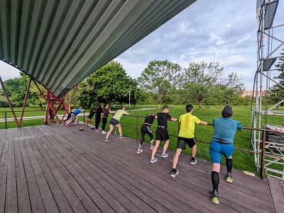 Środowe popołudnie to idealny moment na trening pod okiem trenera Daniela. Grupa z mieszanym poziomem zaawansowania zebrała się na Bulwarach nad Wisłokiem – na scenie przy ścieżce biegowej, żeby rozpocząć trening profesjonalna rozgrzewką. Grupa pokazała, że bieganie może być czystą frajdą.